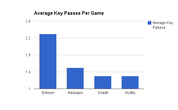 22 year-old Eriksen’s ability to create chances (Key passes = passes that lead directly to an attempt on goal)