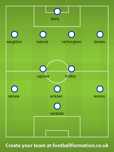 I would give Lennon a try on the left. Pochettino likes inverted wingers and the experienced wide man will provide some cover for Davies. Soldado gets the nod, in a game where crisp passing may be needed to unlock a defensive formation.