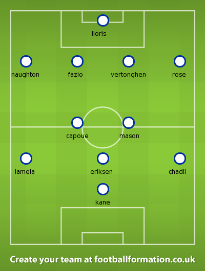 Who would you play in Lamela’s place? Maybe put Kane in at number 10, Soldado up front and Eriksen and Chadli either side?