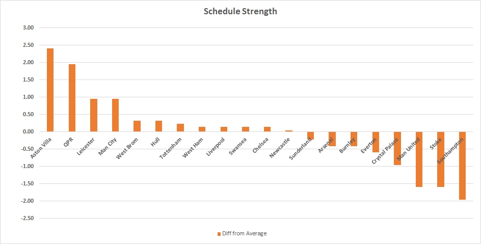 Southampton’s amazing form can be somewhat explained by the easiest schedule of all twenty teams. Manchester United must also worry that they only sit seventh after a relatively soft start.