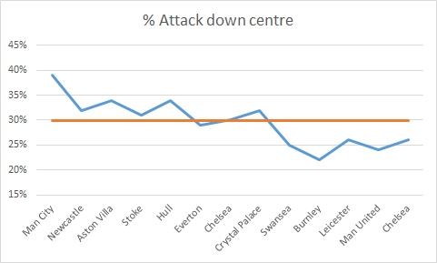 WhoScored.com gives a percentage for how often a team attacks down the centre, on the left and on the right. Back in September Spurs were one of three teams who used the wings the least, going down the middle 32% of the time.