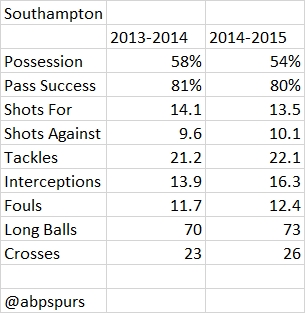 Pochettino’s side had more possession, while Koeman’s make more interceptions and crosses. Otherwise it seems not so much has changed at St. Mary’s. In fact it’s striking how close most of the numbers are.